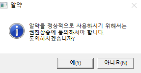 알약을 정상적으로 사용하기 위해서는 권한상승에 동의하셔야 합니다. 해결 방법