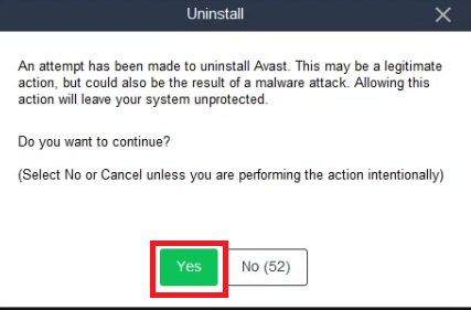 Avast Free Antivirus Setup창에서 UNINSTALL 클릭해주세요.