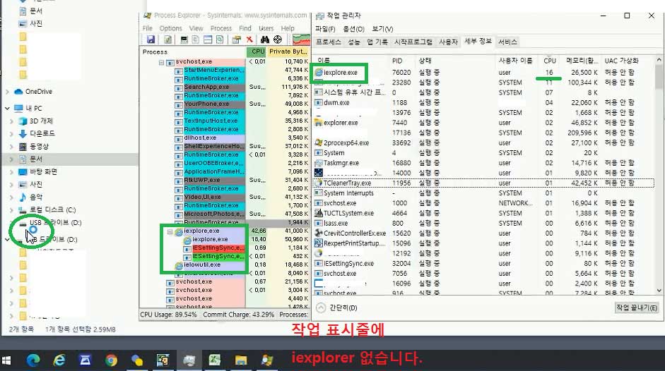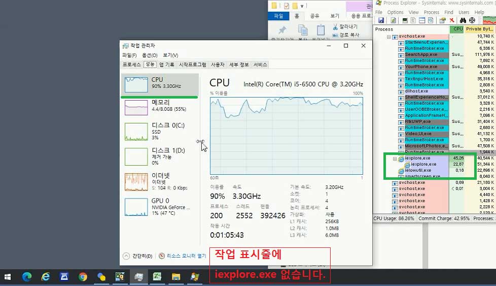 인터넷 익스플로러를 실행하지 않았으나 작업 관리자에 iexplore.exe가 떠있습니다.