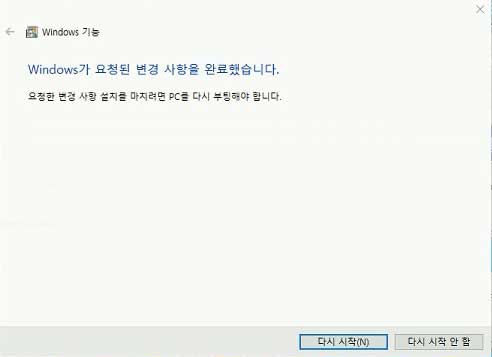 Windows가 요청된 변경 사항을 완료했습니다. 다시 시작 클릭
