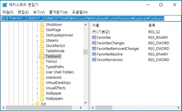 2. HKEY_CURRENT_USER\SOFTWARE\Microsoft\Windows\CurrentVersion\Explorer\Taskband