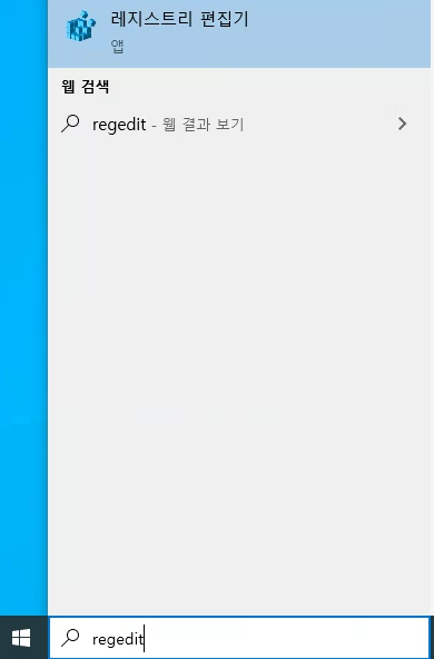 1. 작업 표시줄 - 돋보기 - regedit 입력 후 레지스트리 편집기 클릭