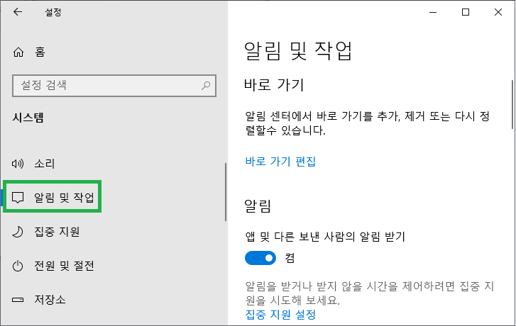 앱 및 다른 보낸 사람의 알림 받기가 켜져있을 겁니다. 이 켬 상태를 끔으로 바꿔주세요.