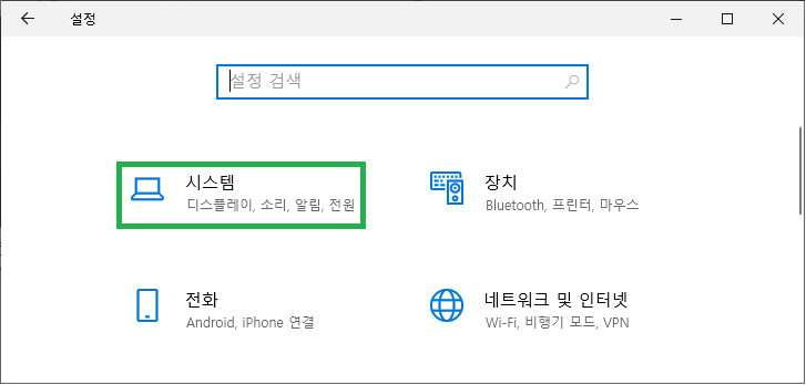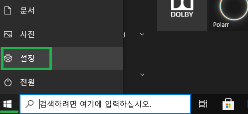 작업 표시줄 왼쪽 하단의 Windows 로그 - 설정으로 이동합니다.