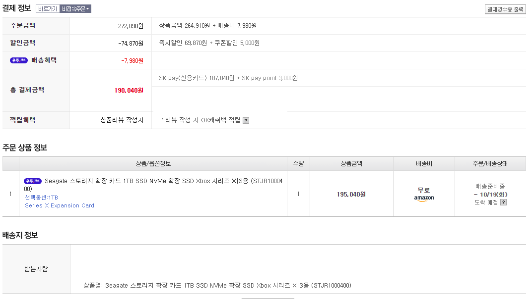 XBOX Series X를 구매한지도 1년이 다되어가는데 요즘 게임들 용량이 커서 기본 저장공간이 간당간당하네요. Xbox Series X|S용 Seagate 스토리지 확장 카드가 필요할 것 같아서 어느정도 가격이 되면 구매하려고 생각했었는데 생각한 가격보다 싸게 구매하게되었습니다.