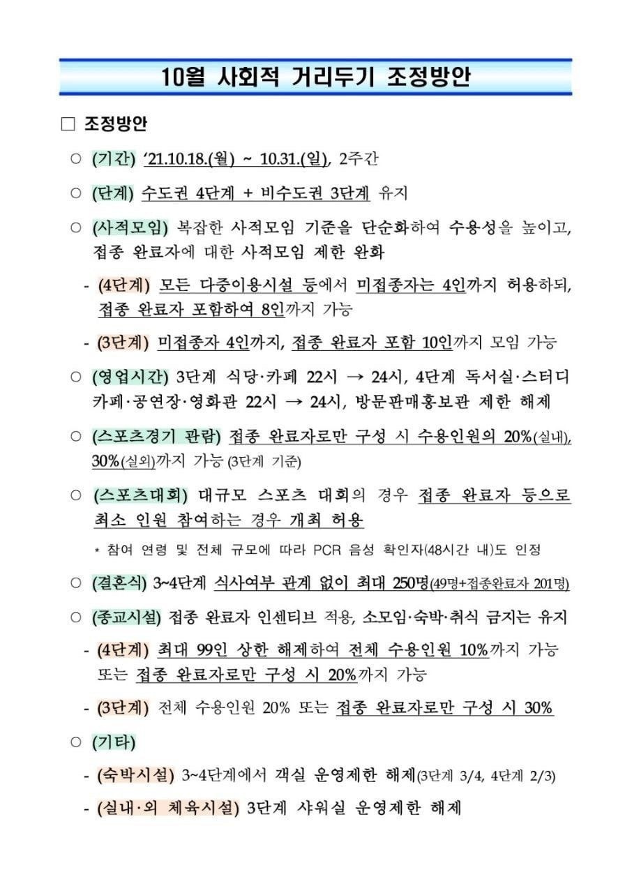 2주간 남은 10월의 사회적 거리두기 조정방안이 발표가 되었습니다.