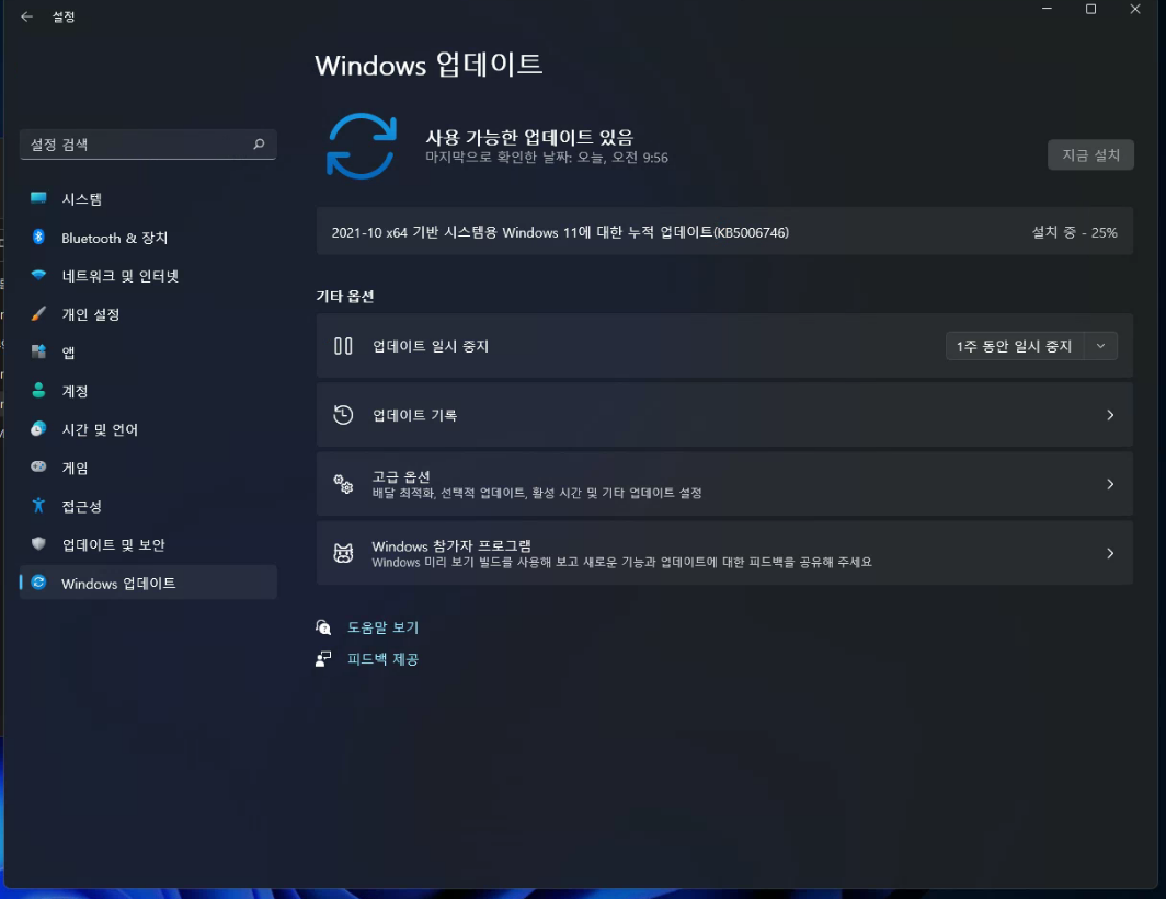 Windows11에서 라이젠 CPU 성능 저하 문제가 있었고 오늘 업데이트가 나왔습니다. KB5006746 에 포함되어 있습니다.