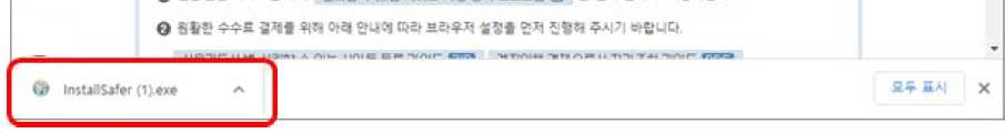 3. 브라우저 하단에 다운로드된 installSafer.exe 설치파일을 클릭하여 설치완료하세요.