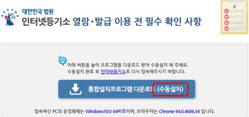 대법원 인터넷등기소에서 공지사항을 내놨으나 2번 크롬 및 엣지 브라우저에서 수동설치가 버튼이 보이지 않고 있네요.