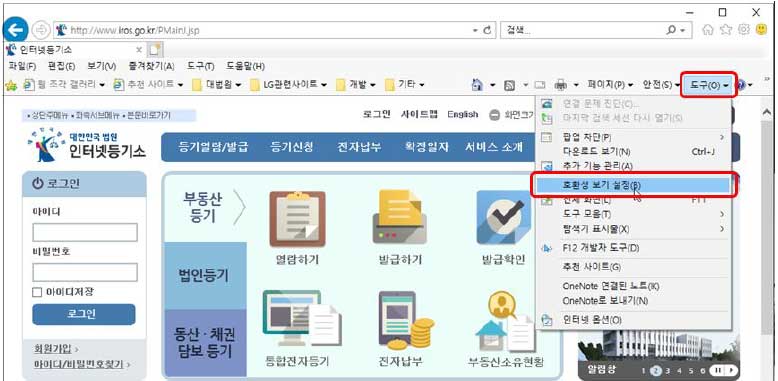 대법원 인터넷등기소 열람하기 오류, 발급하기 오류 브라우저별 이용안내