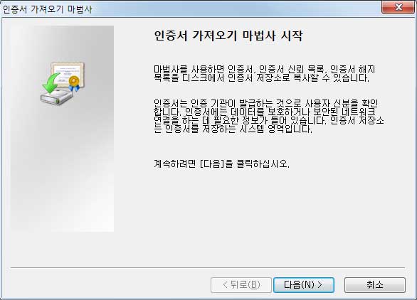 구 버전 윈도우OS를 사용하는 컴퓨터에서 새로 등록한 인증서가 인식이 안되어서 문제가 발생할 수 있습니다.