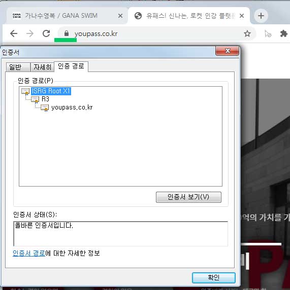 유패스, 가나수영복 개인 정보 오류로 접속이 안될 때 DST Root CA X3 ISRG Root X1