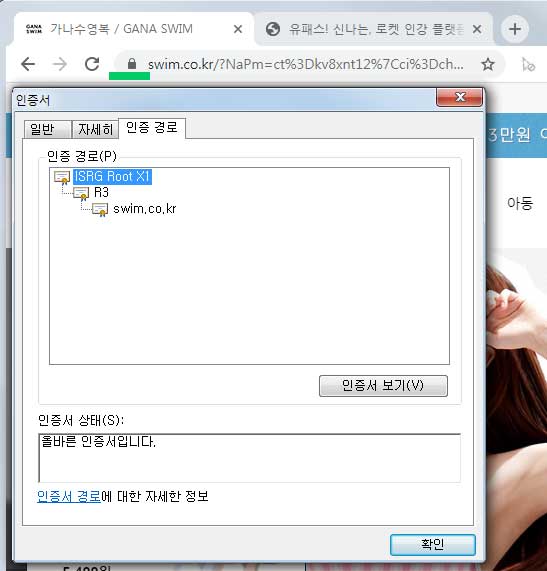 가나수영복 사이트에서 사용하는 루트인증서도 ISRG Root X1입니다.
