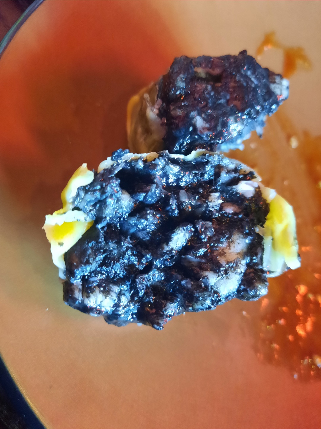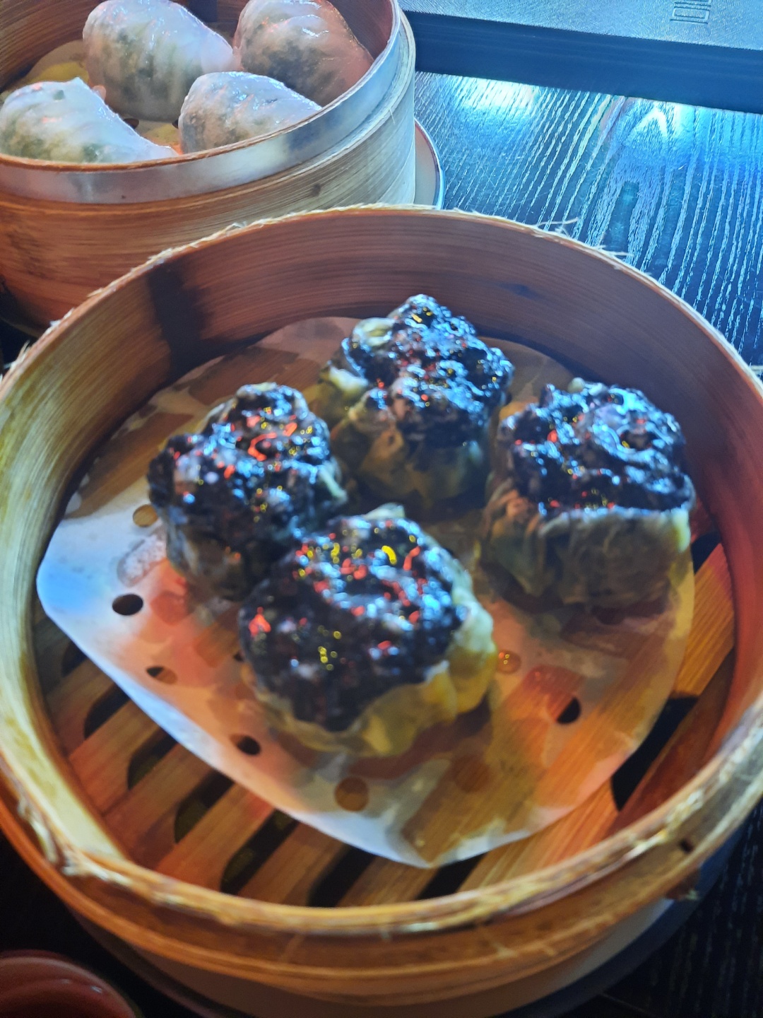 트러플 쇼마이 딤섬, 이 비쥬얼 하나만으로 지대한 관심을 갖게 만드는 딤섬입니다. 보는 이에 따라서 맛있게 보일 수도 무섭게 보일 수도 있겠네요. 설명에는 복주머니 모양으로 만들었다네요.