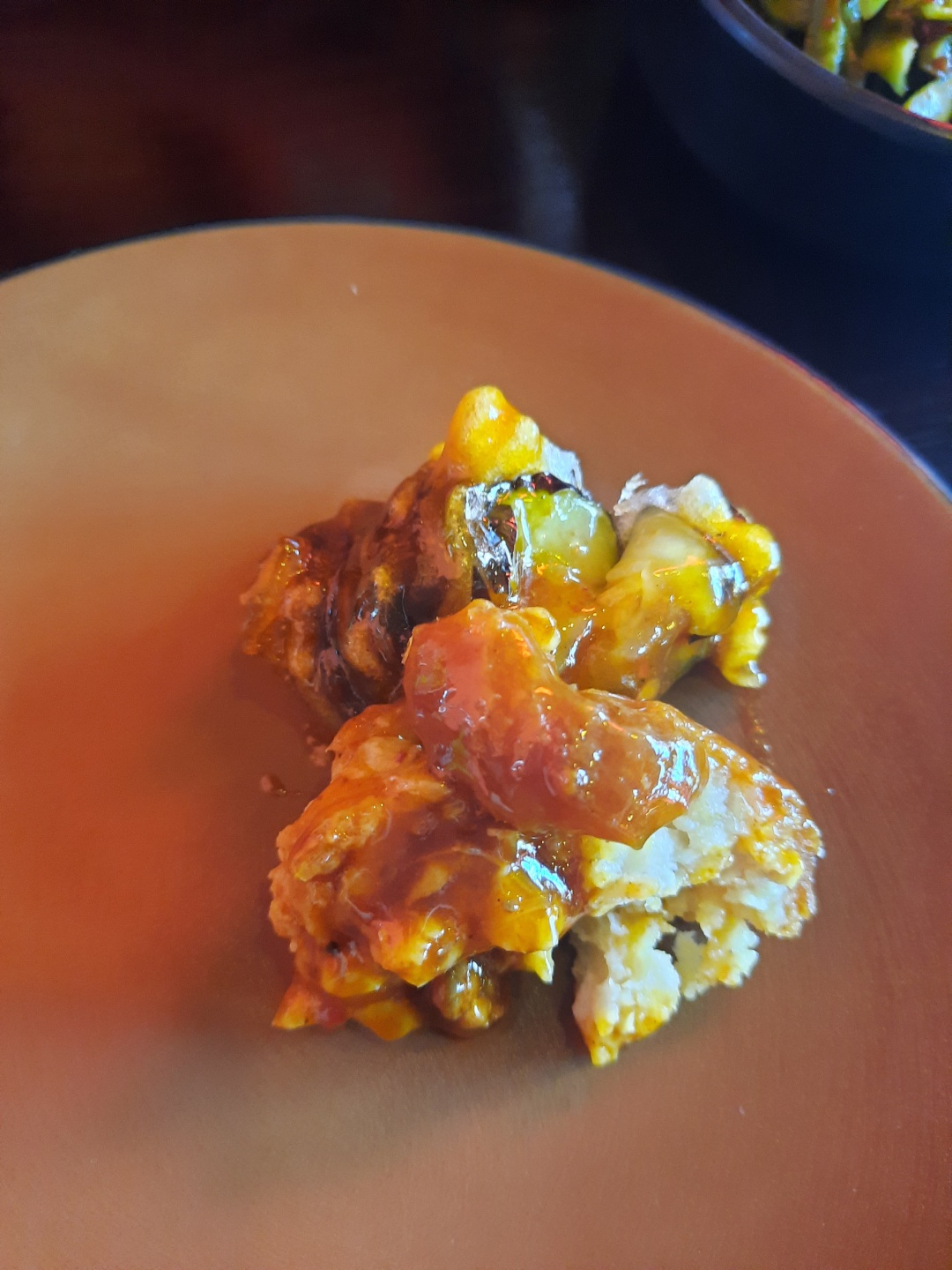 다른 가지요리도 좋아하지만 튀김도 속이 아주 부드럽고 촉촉하니 입안에서 녹네요. 완자는 살짝 퍽퍽할 수 있으니 소스를 묻혀서 먹으면 입안에서 잘 버무려지네요.