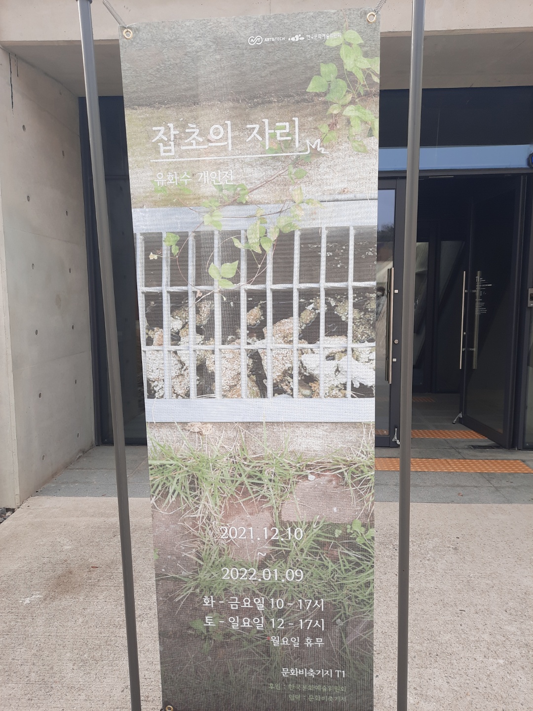 문화 비축 기지 T1에서는 2022년 1월 9일까지 잡초의 자리라는 유화수 작가의 개인전을 하고 있습니다.