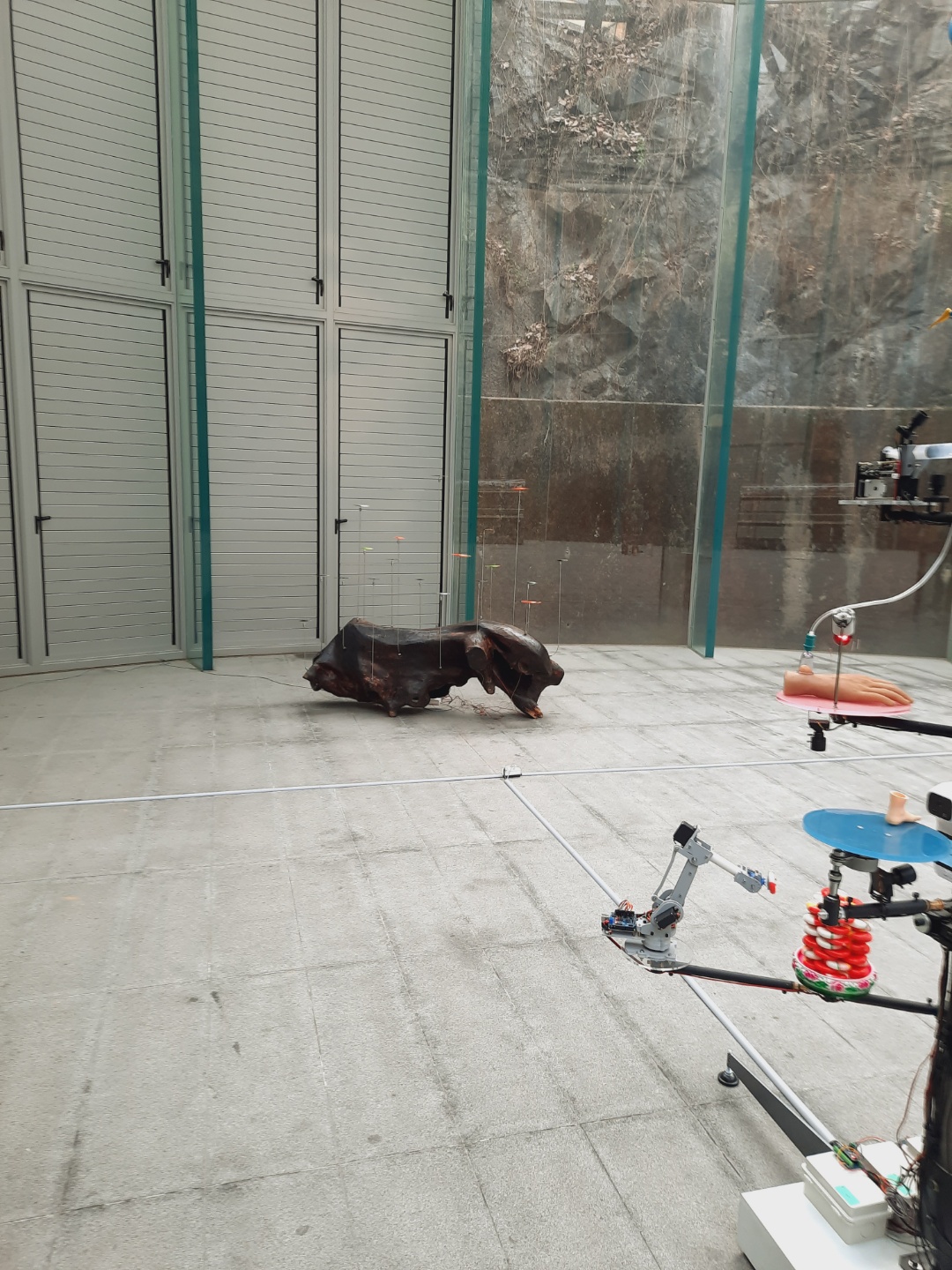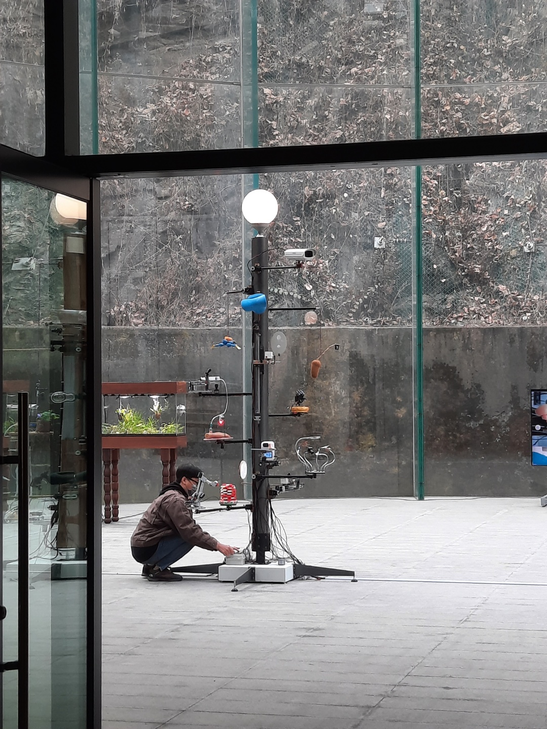 작품이라고는 하는데 잡초를 키우는 게 있고 채소들도 있고 어디 고물을 주워와서 짜집기한 장난감들도 있고 드론 프로펠러가 있기도 하고 이해가 안되는 것들이 놓여져 있더라고요. 그런데 옆에서 어떤 남자분이 저희쪽으로 와서 작품에 대해서 하나하나 설명을 해주시더라요. 오늘 첫 전시하는 날인데 아직 작품에 대한 설명문구를 마련하지 못했다고 하더라고요.