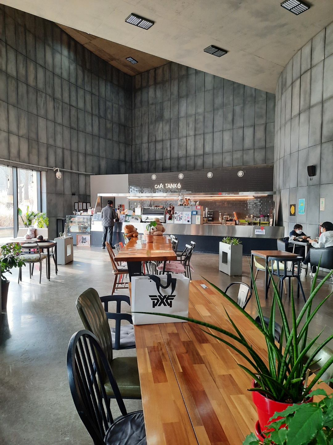 T6번 카페의 이름도 카페 탱크6이라고 붙여놨네요. 와~ 생각보다 너무나 넓고 깨끗하고 층고가 엄청나게 높습니다. 이런 곳에서 살고 싶다는 생각을 잠깐 하게 만드네요.