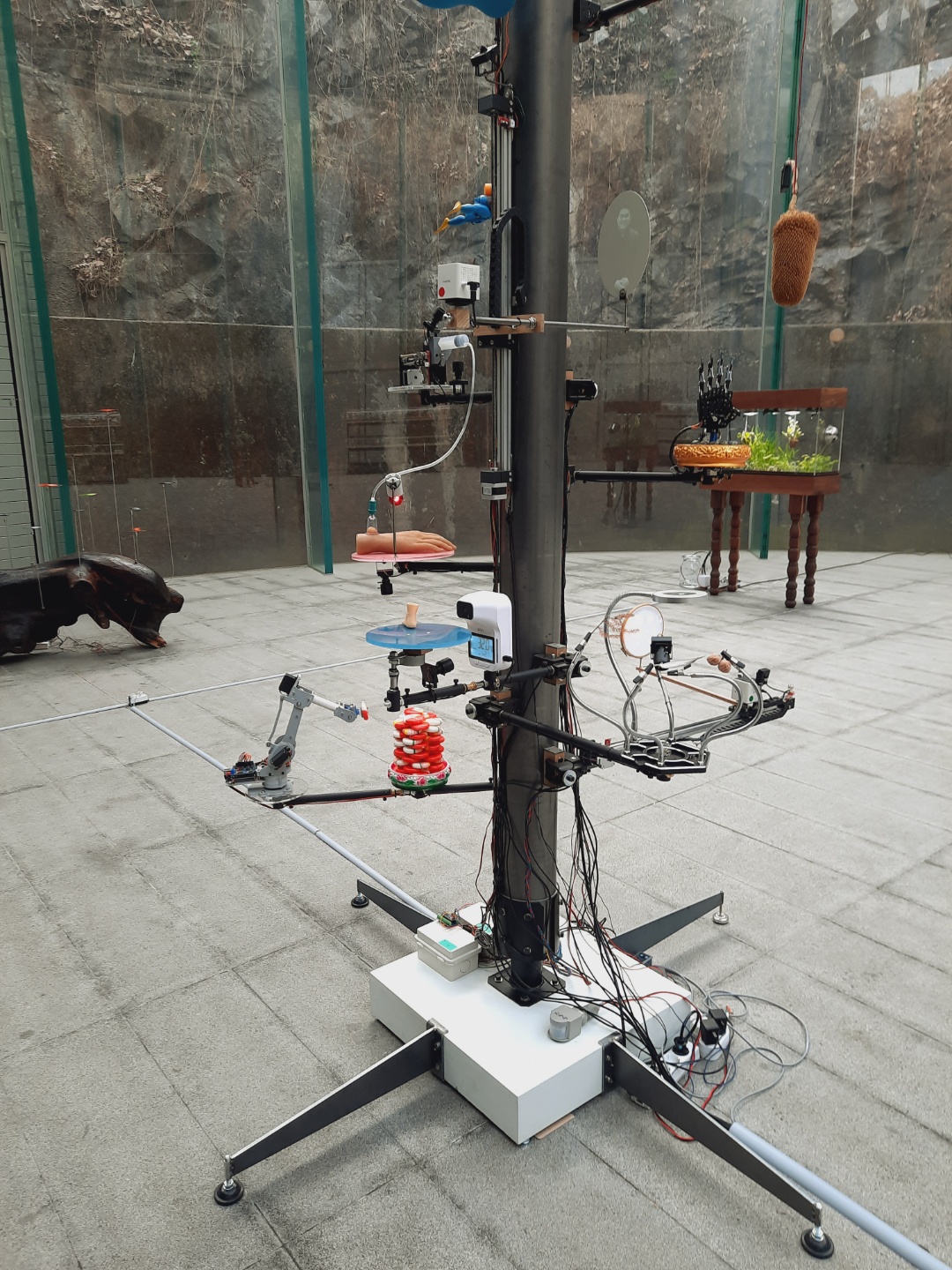 높은 수준의 기술이 그에 맞지 못하는 일을 하는 것을 표현한 작품입니다. 기술이 좋아도 써먹어야 할 곳을 찾지 못하면 쓸모없는 기술이 된다. 지금 나와 있는 기술은 완벽하지 않고 발전해가는 과도기일 뿐이다.