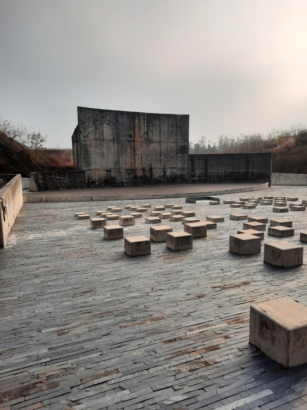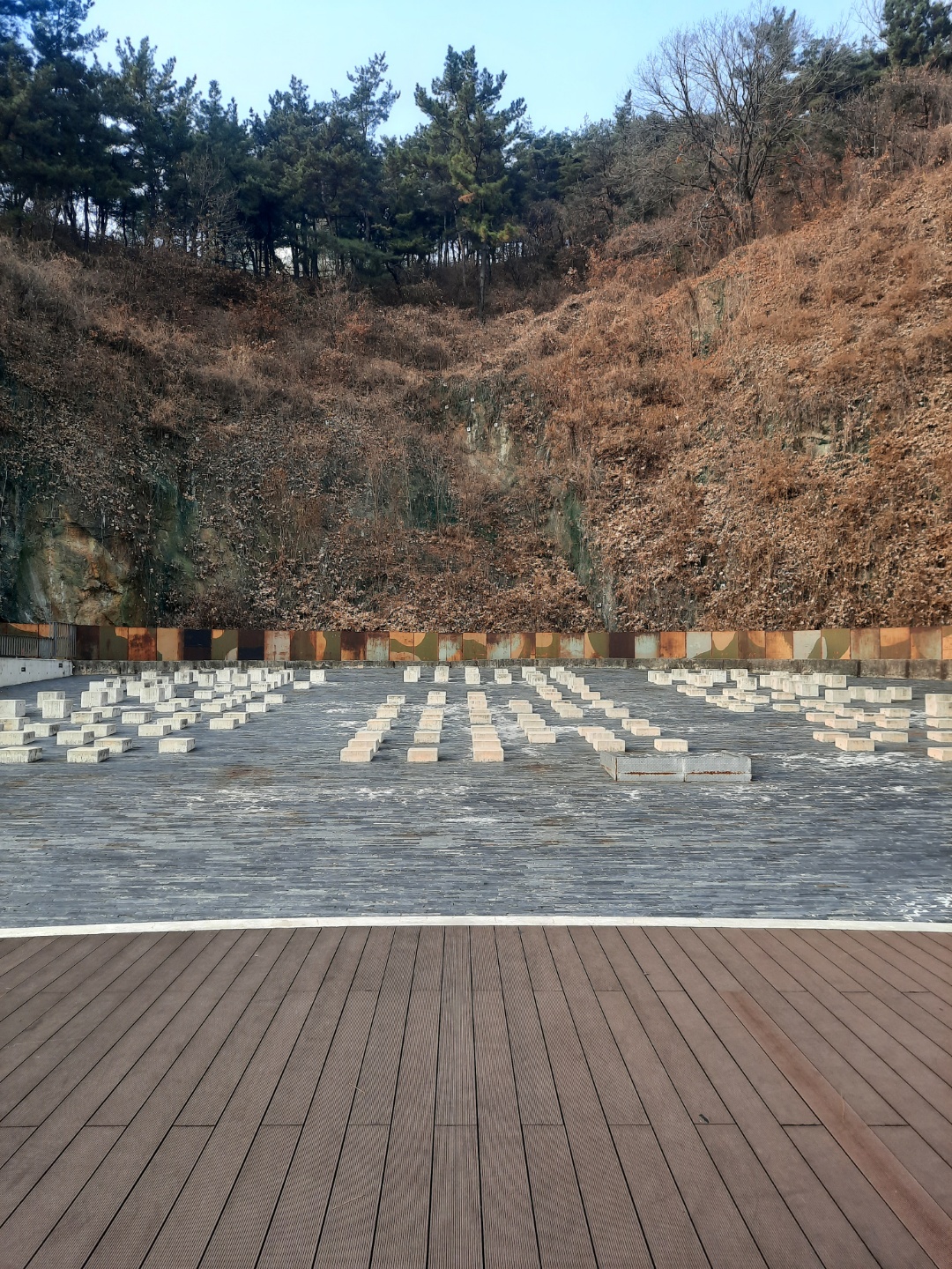 세월의 흔적을 직통으로 맞은 모습의 공연장인데 작품 같다는 생각이 드네요. 콘크리트 의자가 의자가 아닌 난 그냥 작품이라고 말하는 것 같습니다. 빨리 좋은 시절을 만나서 공연장의 역할을 했으면 좋겠어요. 라이브를 들으면 진짜 좋겠다.