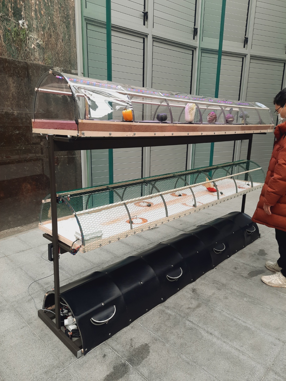 이 작품은 외국 노동자들의 다른 나라에 와서 하는 일을 표현한 것이라고 하네요. 한국에 오면 대단한 일을 할 수 있을거라고 생각하고 오지만 막상 하는 일은 밭에서 채소를 기르고 잠은 비닐하우스 같은 열악한 환경에서 숙식을 한다는 것을 표현한 것입니다.