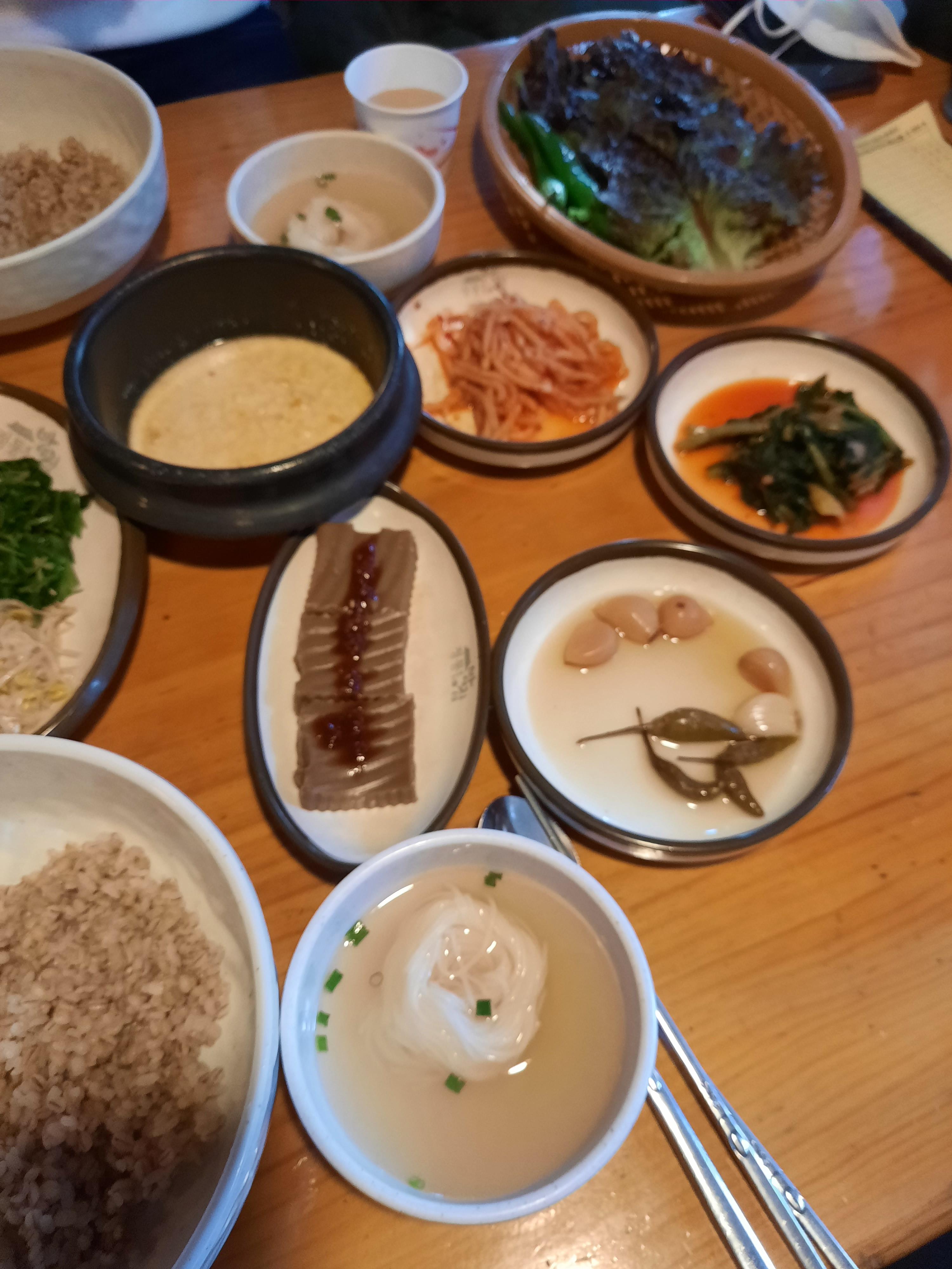 많은 양은 아니지만 조금씩 나오는 반찬들. 모자라면 더 달라고 하면 됩니다. 사진을 너무 막 찍었네요. 초점이 너무 흐린 것 이해해 주세요.