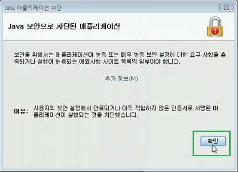Java 애플리케이션 차단 창에서 확인을 클릭