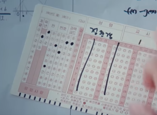 라희가 준경의 천재성을 알아보는 시험시간. 시험지의 문제는 다 풀었는데 마킹을 하지 않았다. 나도 살짝 의아해했는데 그 답은 영화를 보면서 왜 그랬는지 알 수가 있었는데 슬픈 사연이 눈물을 흘렸다.