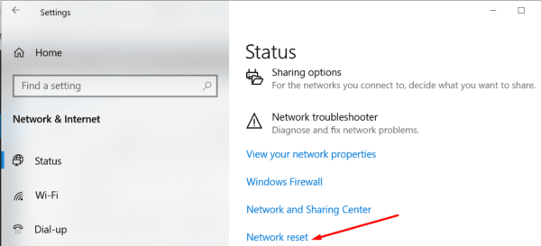 문제가 지속되면 네트워크 및 인터넷으로 돌아가서 이번에는 네트워크 재설정을 선택 합니다 . 컴퓨터를 다시 시작하고 Wi-Fi에 연결할 수 있는지 확인하십시오.