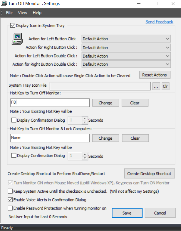 모니터 끄기는 모니터 끄기, 광학 드라이브 꺼내기 또는 컴퓨터 다시 시작과 같은 특정 작업을 수행하기 위해 특정 키 조합을 할당 할 수 있는 가벼운 프로그램입니다.