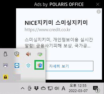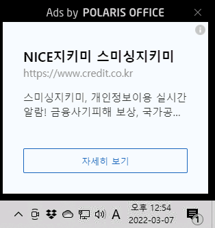 작업 표시줄 위 팝업 광고 Ads by POLARIS OFFICE