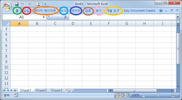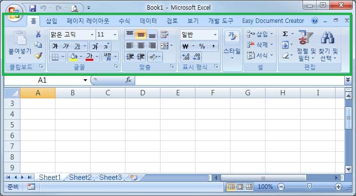 홈, 삽입, 페이지 레이아웃, 수식, 데이터등 메뉴를 떠블클릭해주면 됩니다.