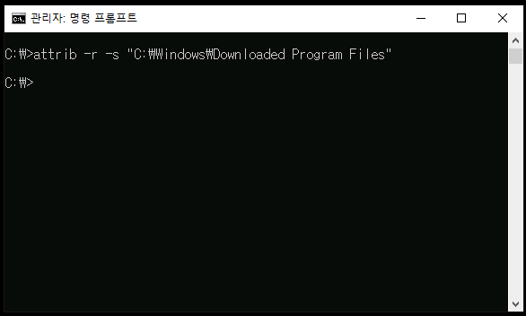 C:\>attrib -r -s "C:\Windows\Downloaded Program Files" 입력 후 엔터