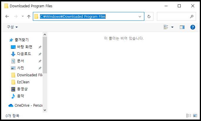 윈도우10 C:\Windows\Downloaded Program Files 폴더를 열었는데 내용이 보이지 않습니다.