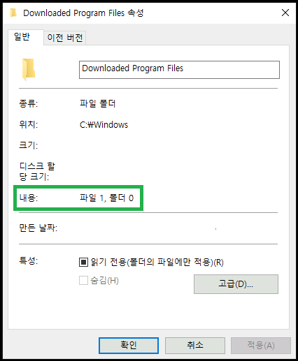 C:\Windows\Downloaded Program Files 폴더 속성을 확인해보겠습니다.