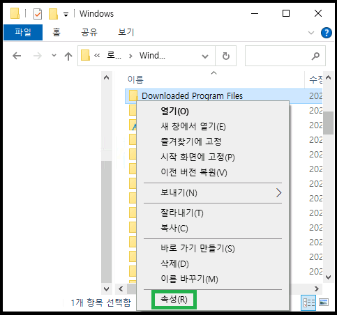 윈도우10 시스템 폴더 Downloaded Program Files 폴더 내용 보는 방법