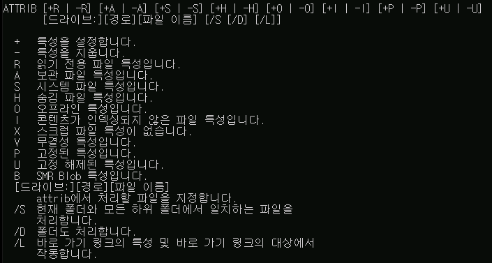 ATTRIB 명령어 옵션 설명입니다.