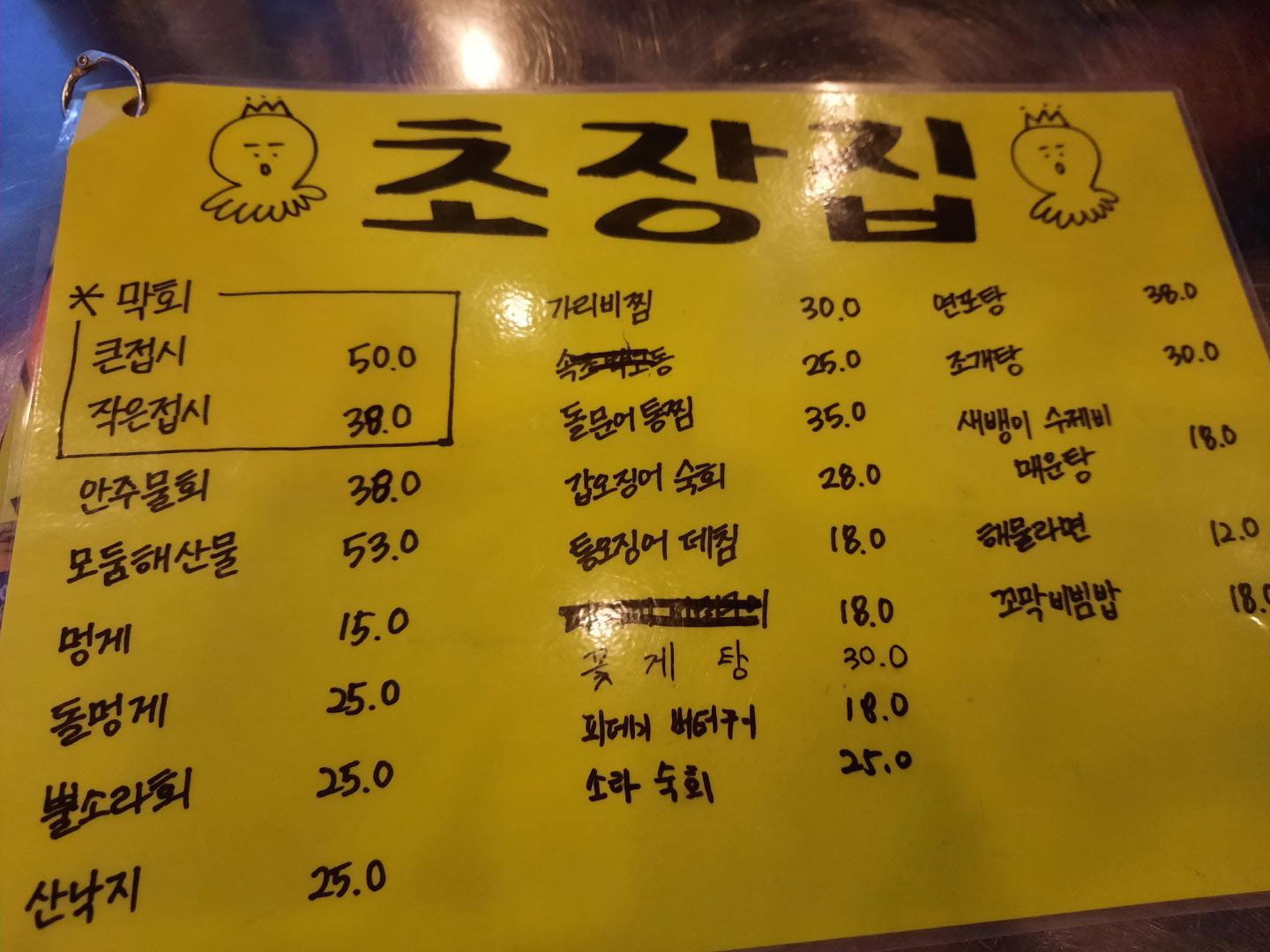 퇴근 후 초장집을 가니 거의 만석이었고 자리가 2개가 남아있었네요. 옆 테이블과의 간격이 좁아서 살짝 불편하네요. 그래도 이왕 왔으니까 모둠 해산물을(가격 53,000원, 2월달에 리뷰를 봤을 때는 가격이 48,000원 이었는데 그사이 가격이 올랐네요.) 주문했습니다. 그러나 오늘은 모둠 해산물이 안된다네요.ㅠㅠ
