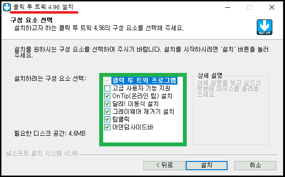 클릭 투 트윅 설치시 제휴 프로그램 설치