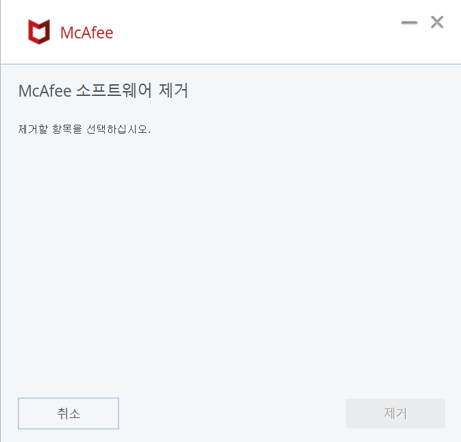 맥아피 McAfee 제거할 항목을 선택하십시오. 메시지가 뜨고 제거 버튼이 비활성화가 되어 삭제를 할 수 없는 경우가 있습니다.