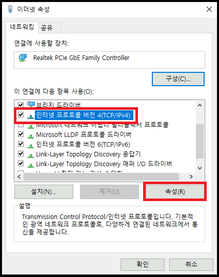 5. 인터넷 프로토콜 버전 4(TCP /IPv4) - 속성