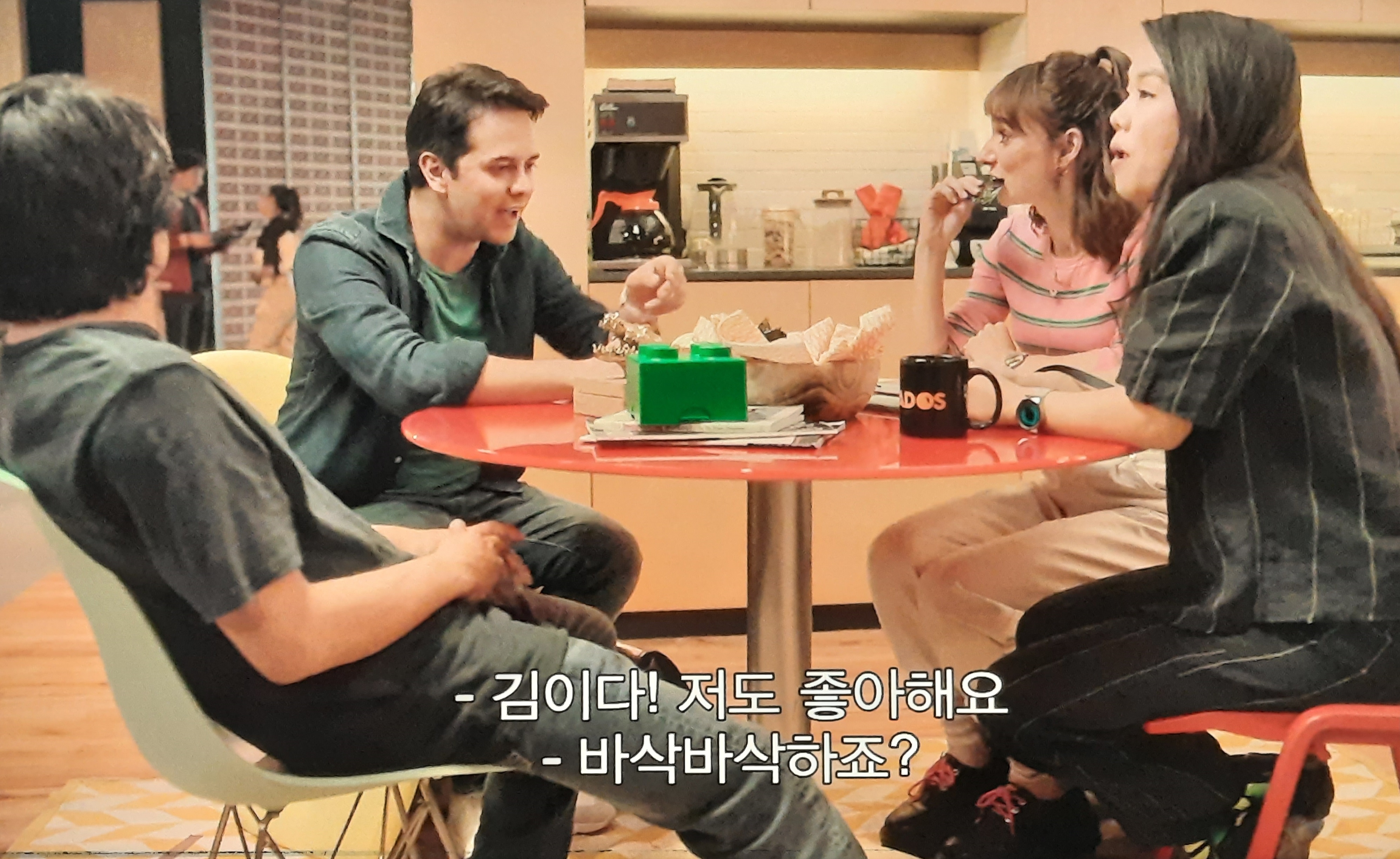 한국 김이 세계적으로 인기가 많아져서 수출양이 어마아마 하다는 말은 예전부터 들어봤습니다. 그런데 미국드라마에서 간식으로 김을 먹는 장면은 못봤었는데 우연히 보게 되네요. 국뽕의 힘으로 사진찍어서 기록으로 남겨봅니다.