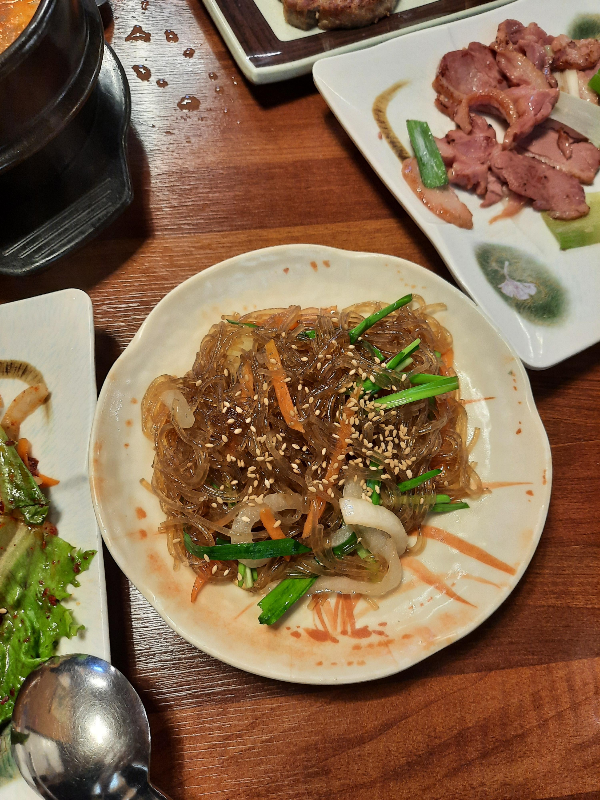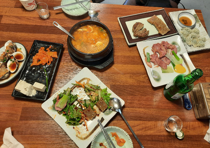 다정술상에는 떡갈비 & 메밀전병, 꼬막, 두부김치, 잡채, 오리훈제, 물만두, 찌게가 나온다네요.