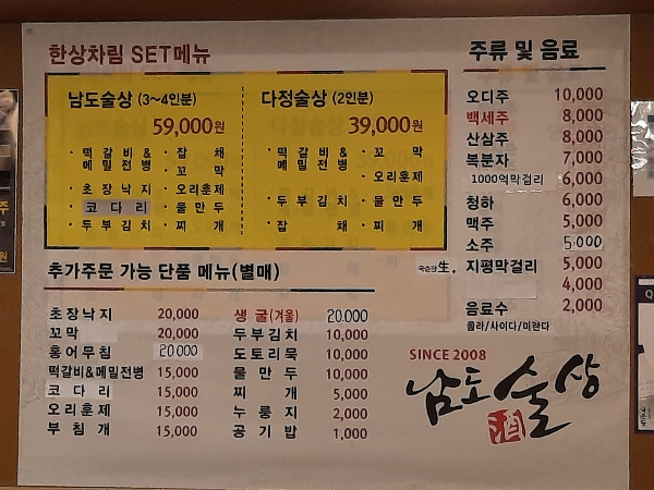 우리는 다정술상(2인분) 39,000원과 도토리묵을 주문했습니다.