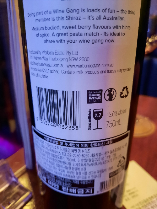 당도가 2개라고 되어있지만 나에게는 스위트 와인 같네요. 집에서 사서 마시는 와인이라면 절대로 구매를 하지 않을 스타일의 와인이기도 합니다.