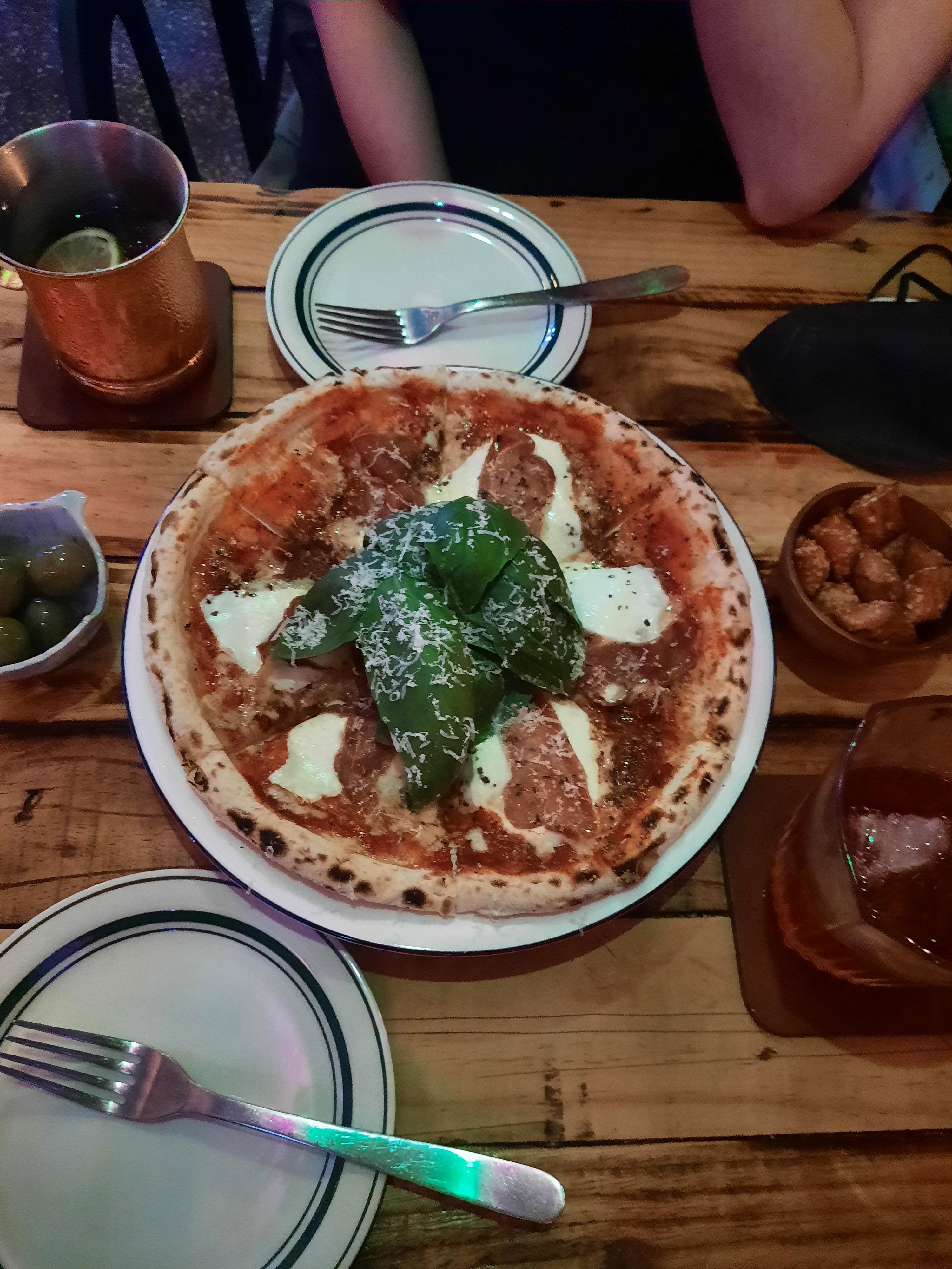 배가 부르지만 그래도 칵테일만 마시기에는 눈치가 보이니까 피자를 주문했습니다. 그런데 이게 뭔가요. 배가 부른데도 피자가 맛있네요.