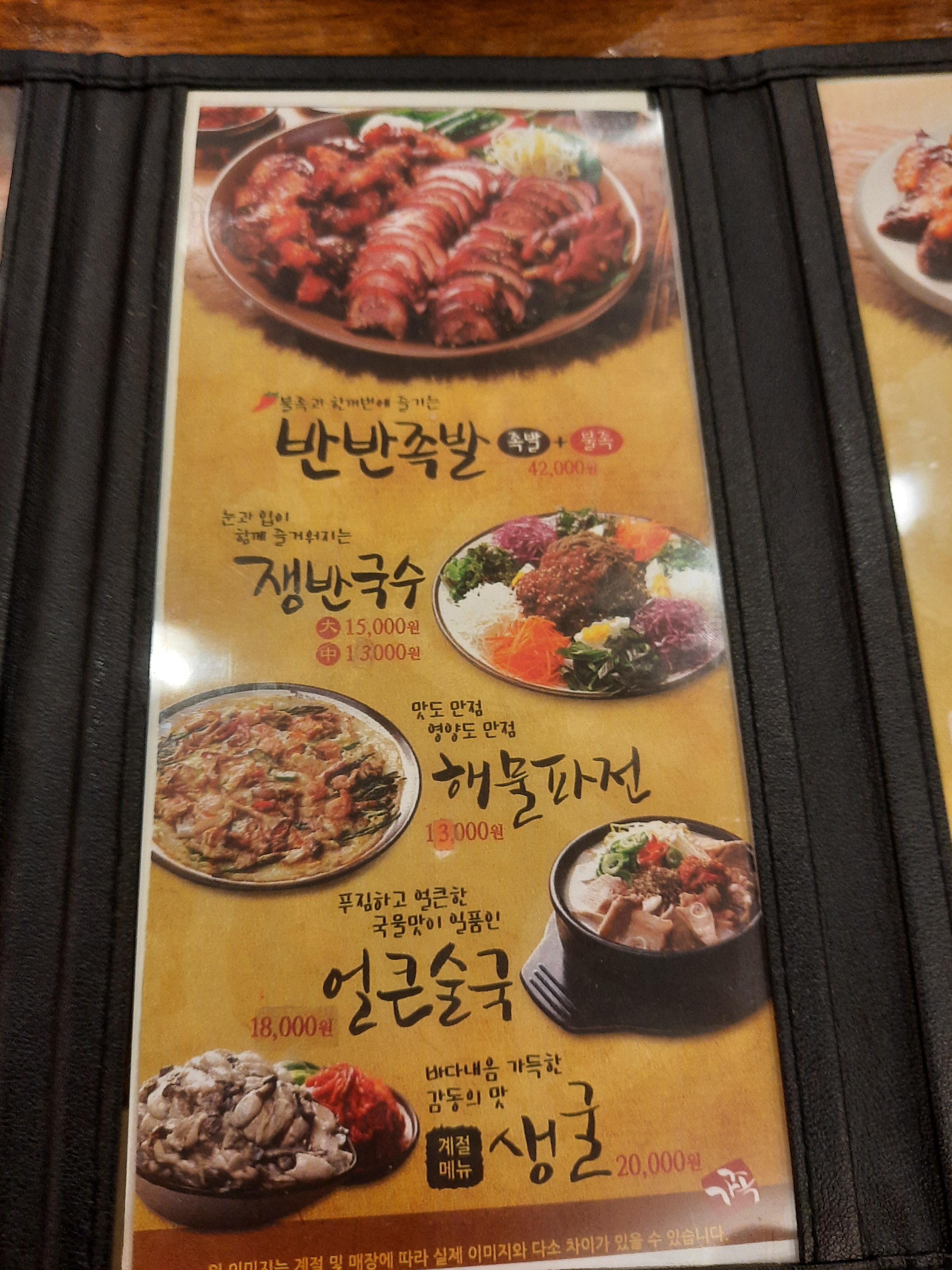 황해도왕족발보쌈 가격은 아래 메뉴판을 확인~하세요.