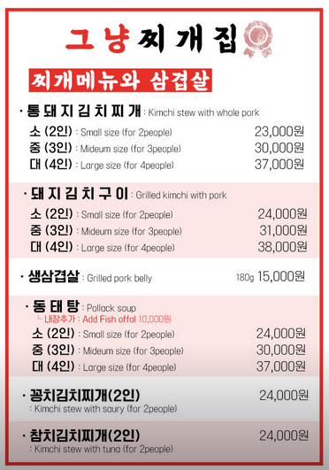 통돼지김치찌게 소(2인) 23,000원