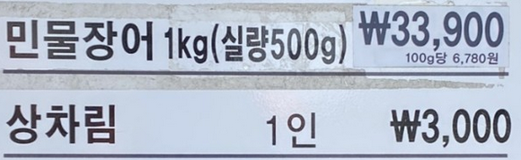 풍천장어 1kg 가격이 33,900원으로 아주 저렴하네요. 참고로 손질한 실제 실량은 500g입니다.
