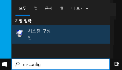 작업 표시줄 돋보기 - msconfig - 시스템 구성 클릭
